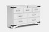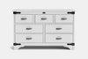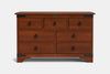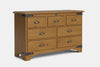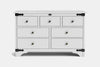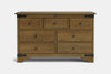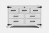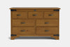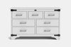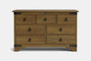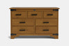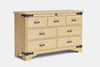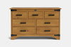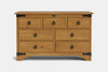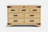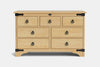 The Arthur 7 Drawer Lowboy, crafted from solid pine with a bevelled edge and forged iron trim, offers both functionality and style. With seven spacious dovetailed drawers, it provides generous storage for accommodation spaces, blending classic charm with durability for long-lasting use.