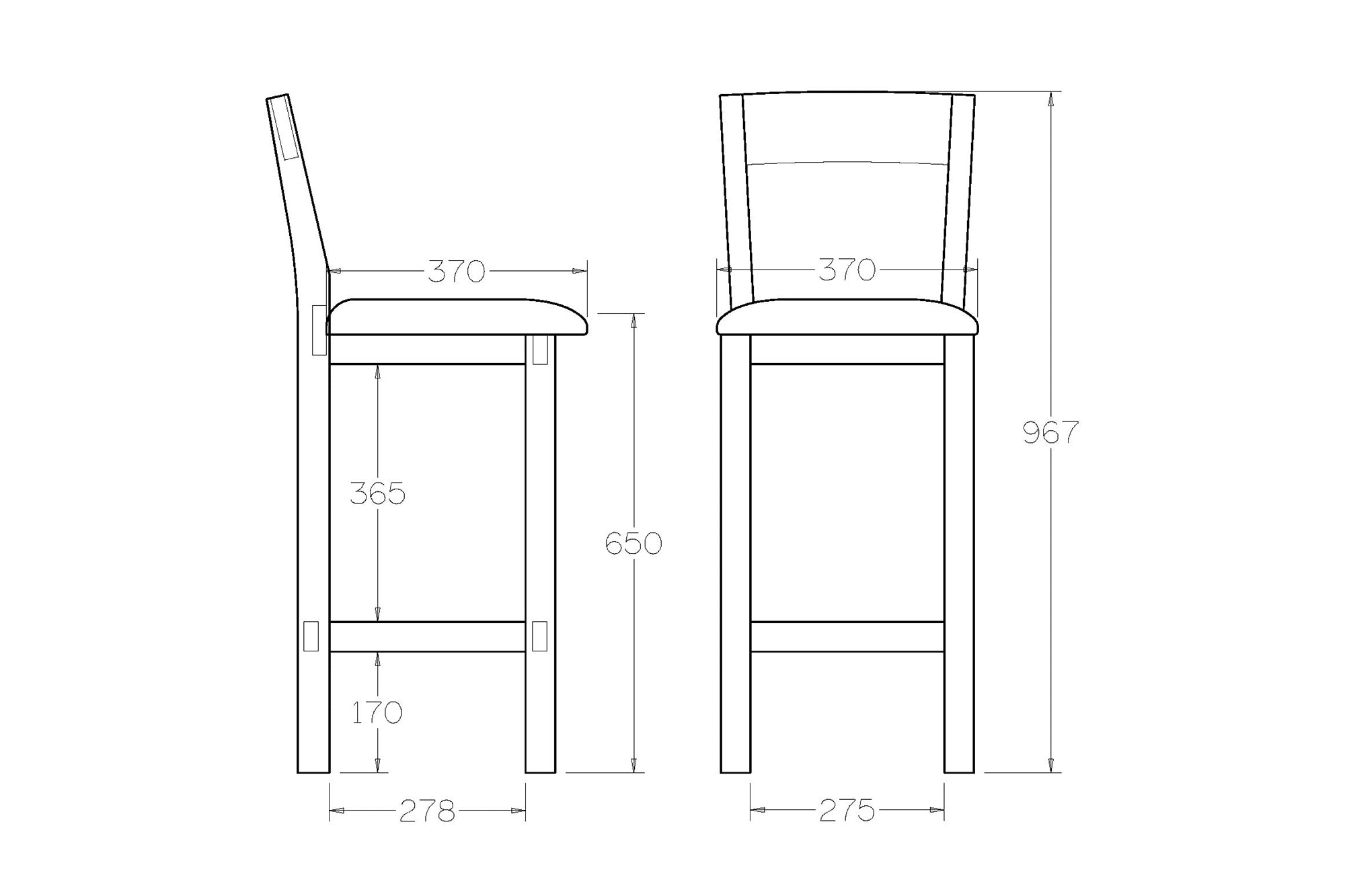 • Seat Height: 650mm (pictured) or 800mm